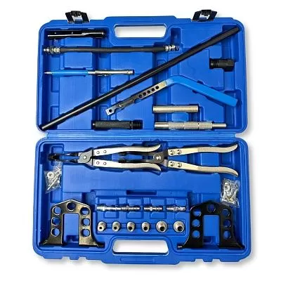Набор включает в себя всё необходимое для снятия стопорных сухарей клапанов, а также для снятия и установки клапанных пружин и маслосъёмных колпачков;