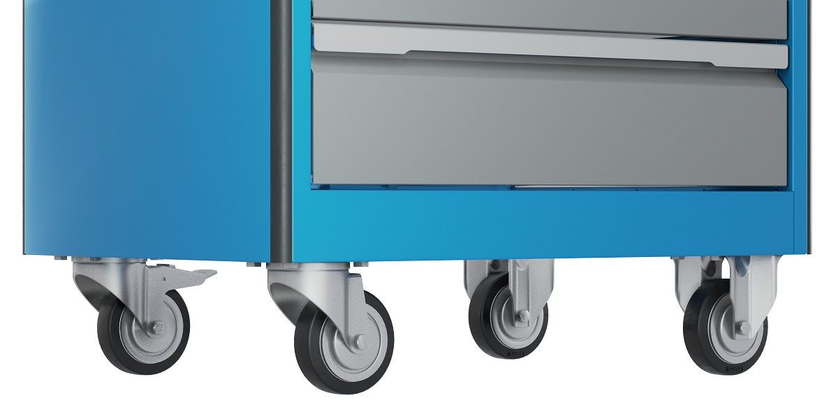 Перфоэкран предназначен для размещения навесных элементов. Корпус тележки сварной. На боковых стенках корпуса выполнена квадратная перфорация 12х12 мм с шагом 38 мм для установки крючков, держателей и других аксессуаров. Ящики устанавливаются на шариковых телескопических направляющих полного выдвижения. Обеспечен свободный и плавный ход ящиков даже при полной загрузке. На лицевой панели каждого ящика установлена ручка-накладка. Каждый ящик снабжен клавишной системой антиоткрывания из оцинкованной стали, препятствующей самопроизвольному выдвижению ящиков, например, при наклоне или перемещении тележки. Тележка оснащена системой антиопрокидывания новой конструкции, которая блокирует открывание ящиков, если один из них уже выдвинут. Это препятствует смещению центра тяжести и предотвращает опрокидывание тележки. На углах тележки установлены специальные резиновые защитные бамперы. Тележка оснащена четырьмя колесными опорами с диаметром колеса 100 мм. Две поворотные колесные опоры с тормозом и две поворотные колесные опоры без тормоза.
